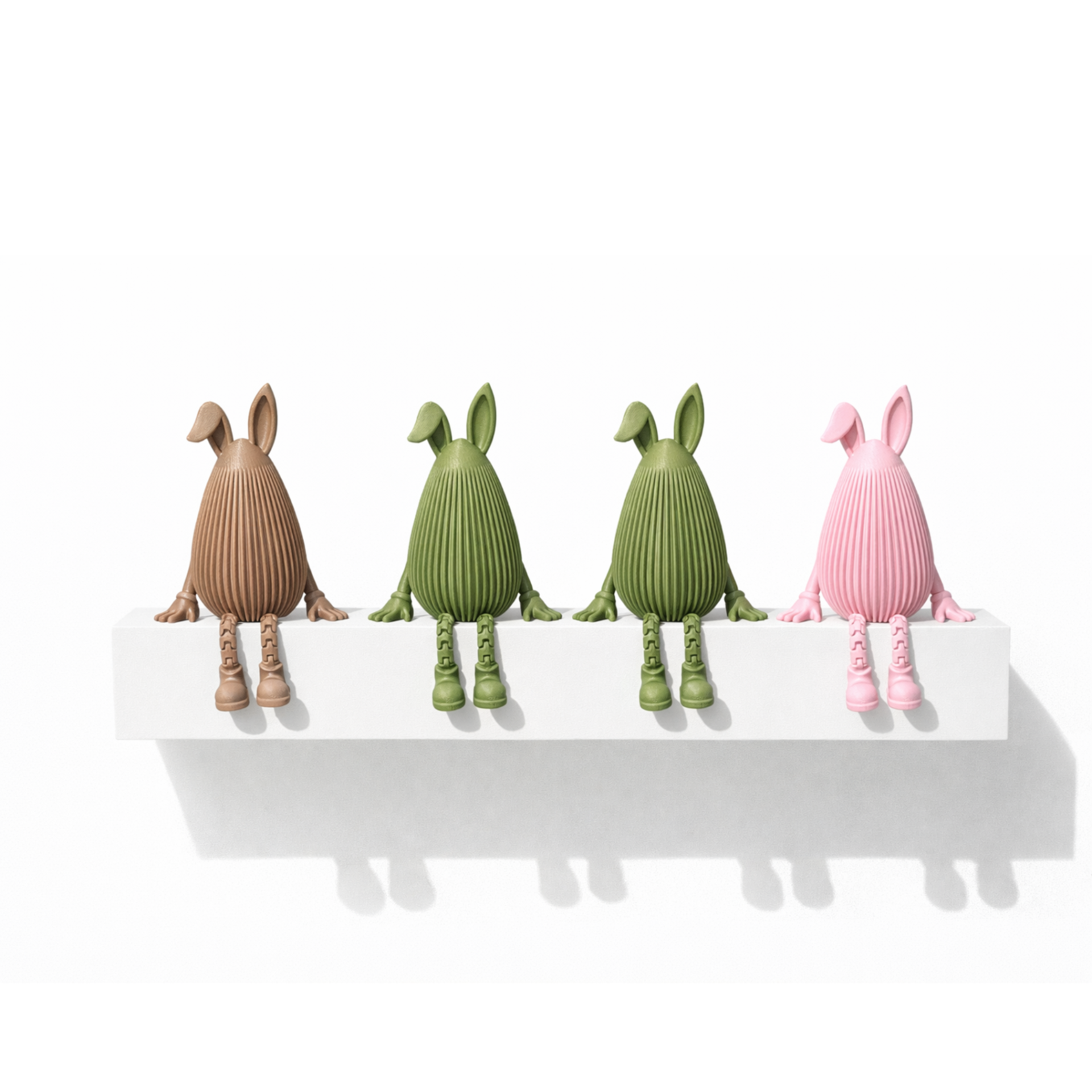 Os Coelhos Sentados da Série Páscoa trazem um ar descontraído e divertido à tua decoração de Páscoa. Cada coelho tem pernas articuladas para sentar em bancadas, prateleiras ou caixas, com a textura ranhurada que dá um visual moderno e tátil, perfeito para criar grupos em mesas ou cantinhos temáticos.
