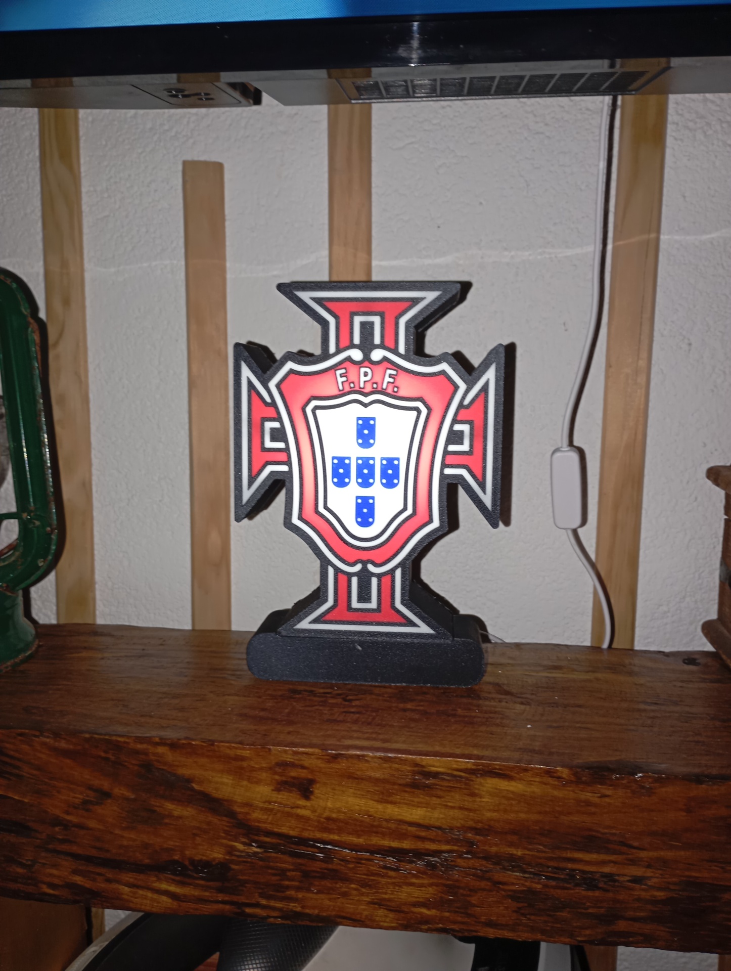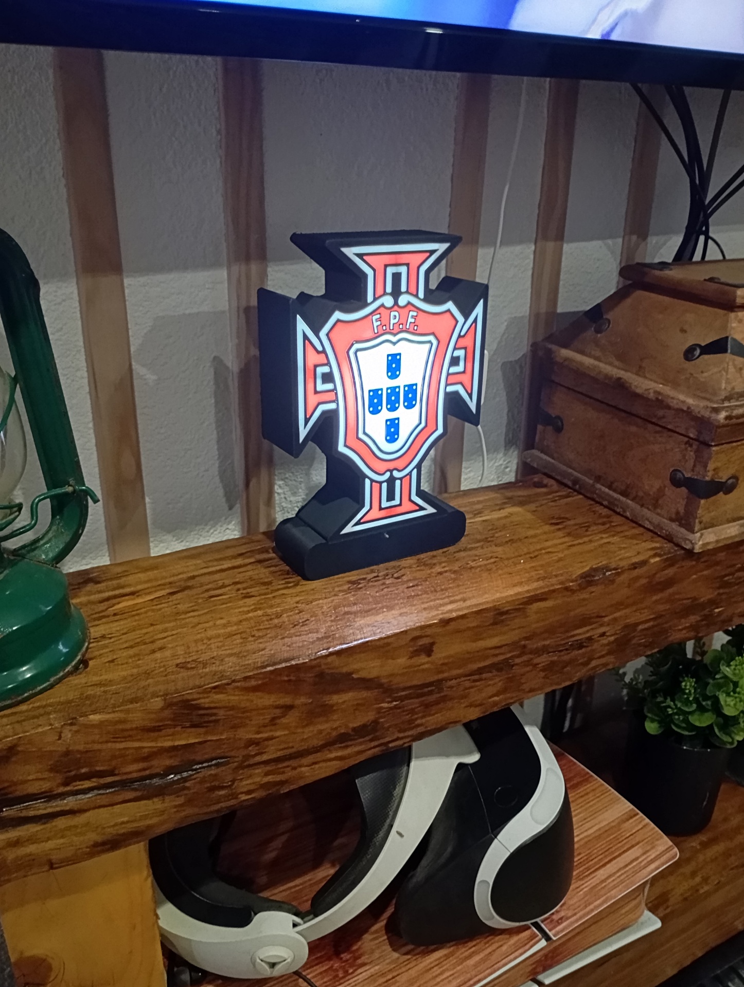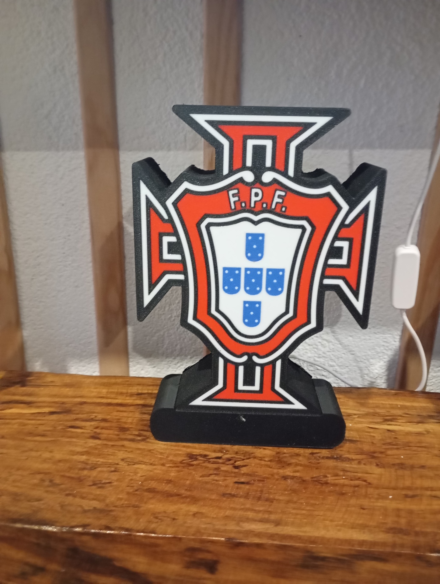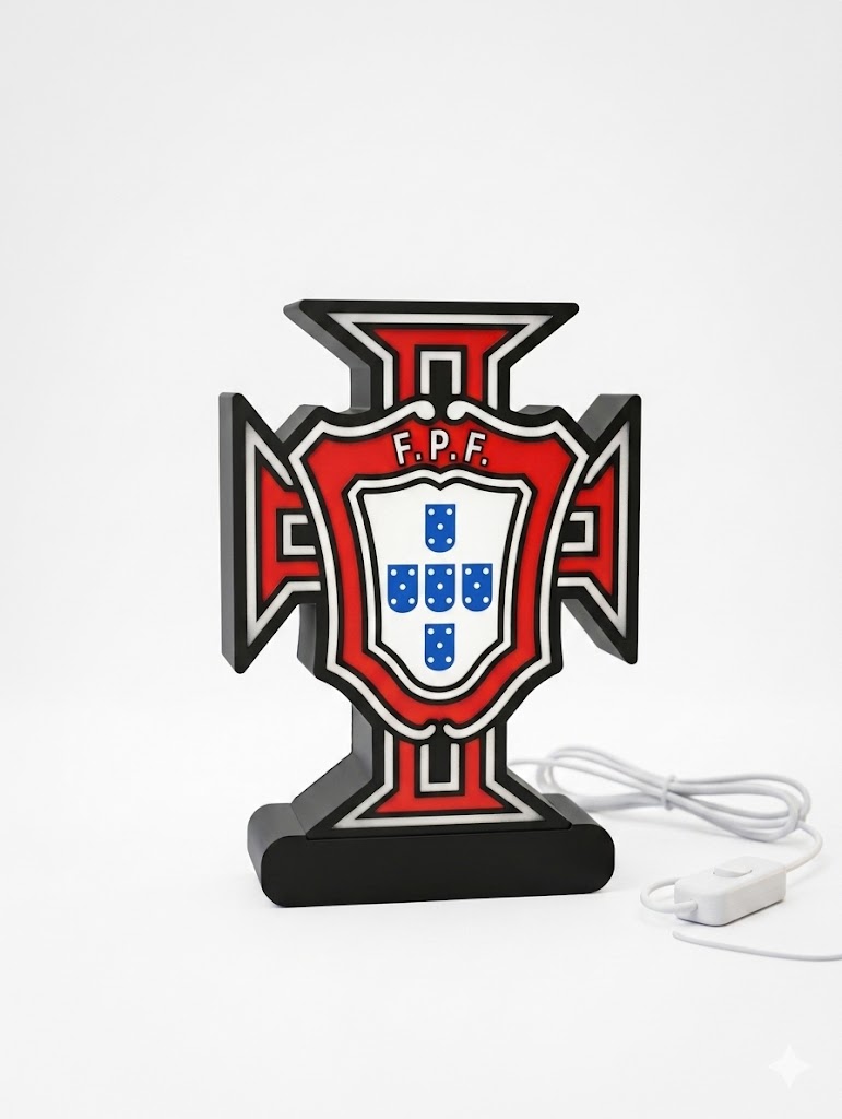 A Luminária Portugal é uma peça decorativa com forte identidade portuguesa, ideal para fãs da Seleção e para dar um toque especial a mesas, prateleiras ou quartos temáticos. O escudo de Portugal em destaque e a base iluminada tornam-na perfeita para ambientes modernos, festas, bares ou espaços de apoio ao futebol.