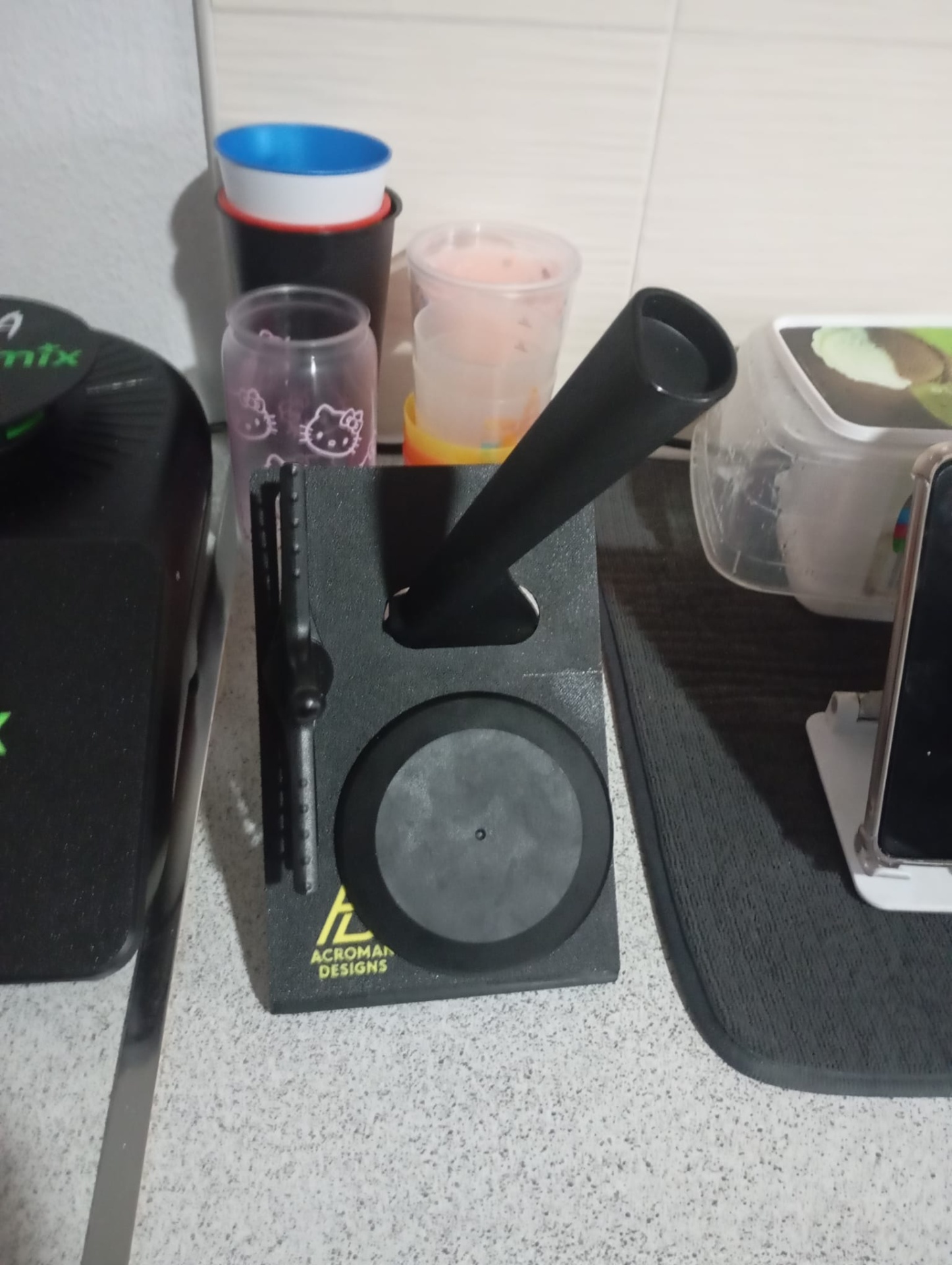O Suporte de Utensílios BIMBY TM7 traz ordem e praticidade à tua bancada de cozinha, desenvolvido em impressão 3D para organizar espátula, borboleta e tampa. Com design compacto e funcional, mantém os utensílios sempre à mão, evitando que fiquem soltos ou a sujar as superfícies.