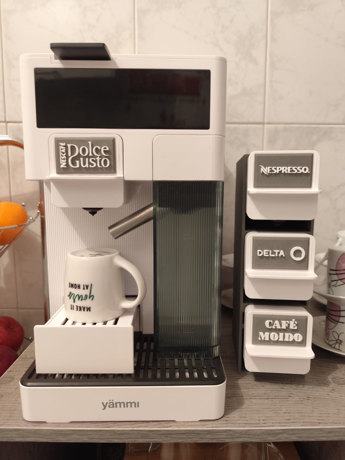 Organize o seu cantinho de café com o Suporte para Manipulos da Yammi 4 em 1. Desenvolvido em impressão 3D com PLA de alta qualidade, este acessório foi pensado para oferecer praticidade e ordem na bancada, acomodando perfeitamente os manipulos da Yammi. Igualmente compativel com as máquinas de café da Cecotec que usam o mesmo sistema de manipulos.
