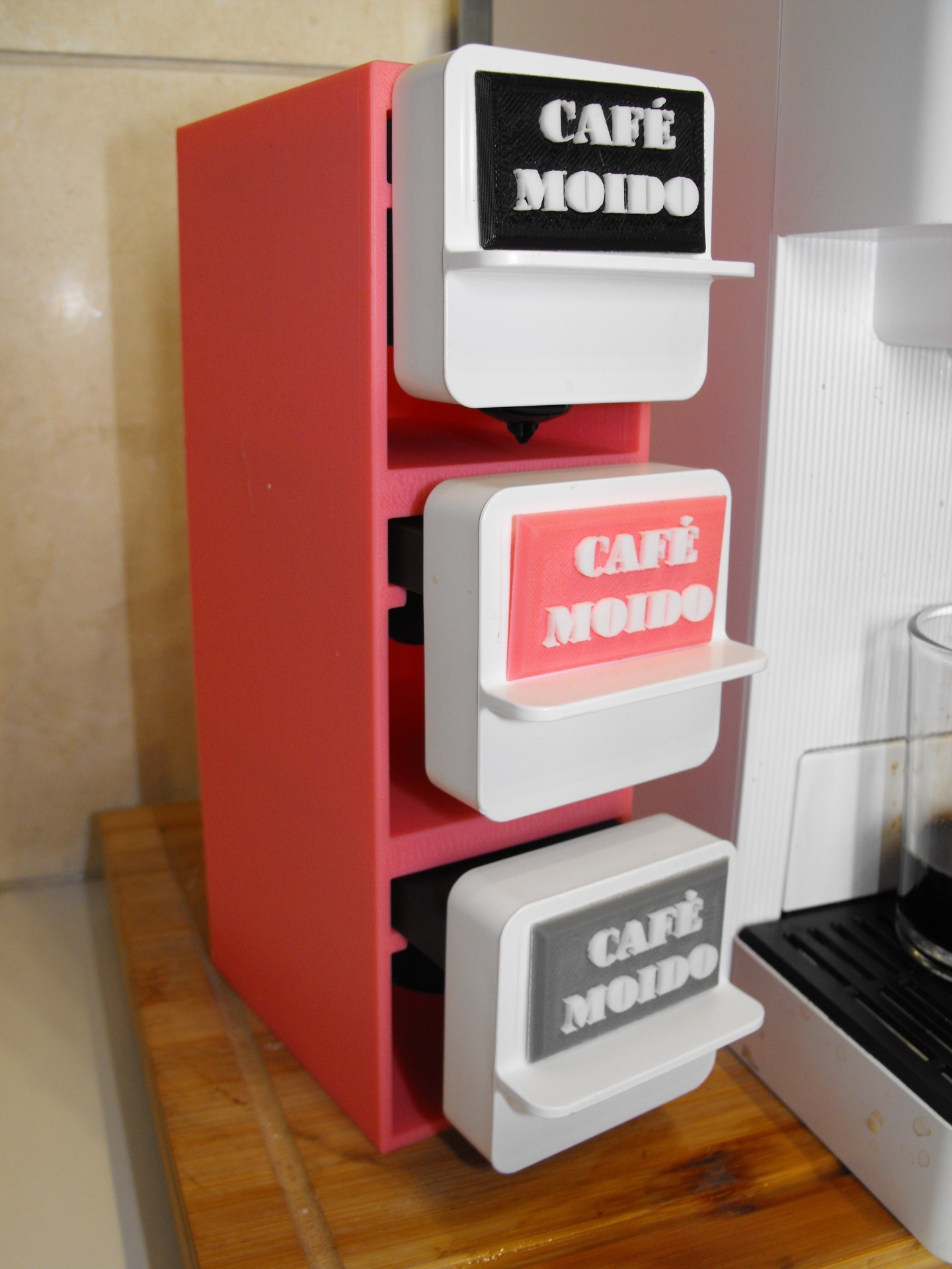 Com linhas modernas e sistema de encaixe preciso, este suporte mantém os manipulos acessíveis e prontos a usar, contribuindo para um ambiente funcional e esteticamente limpo junto à tua máquina de café.