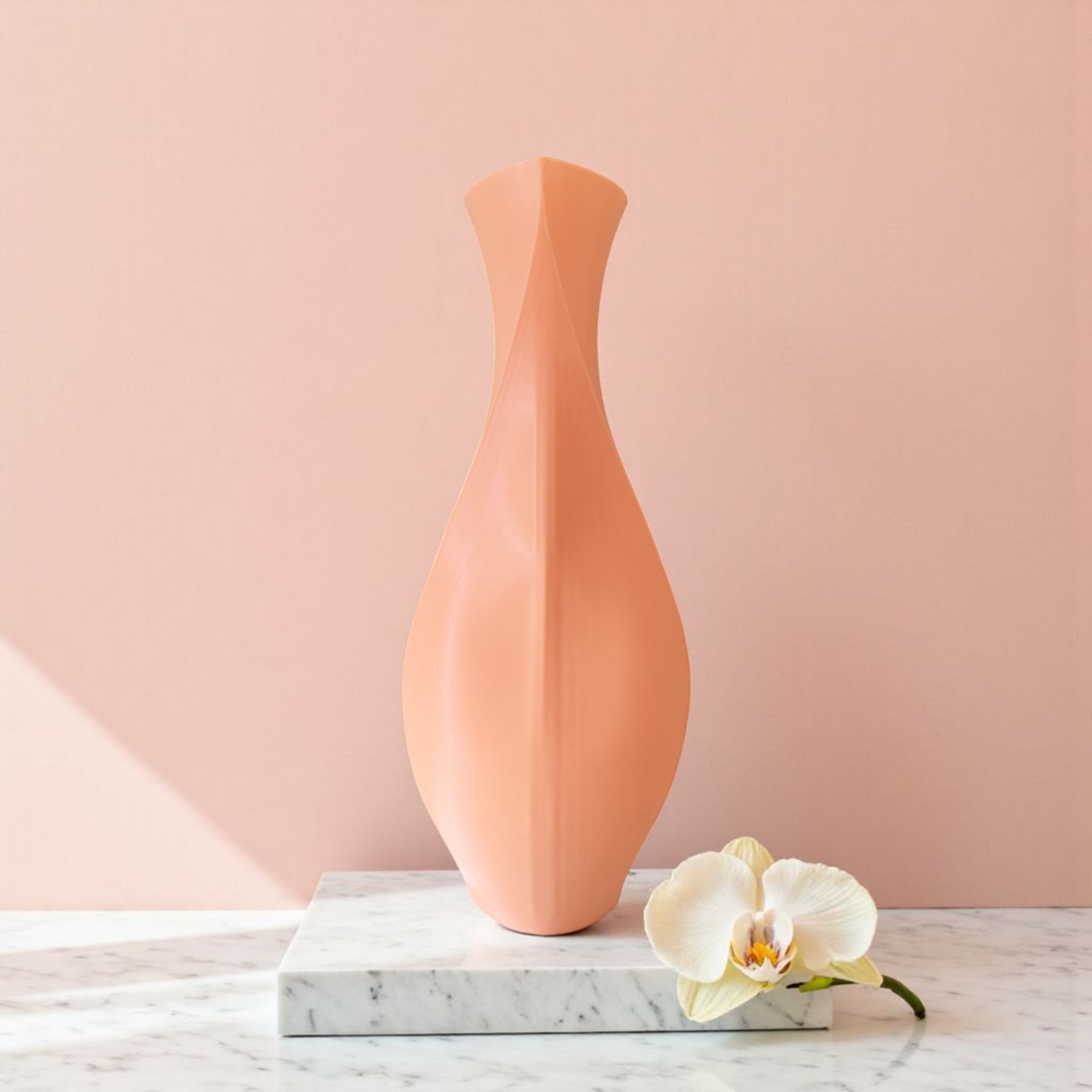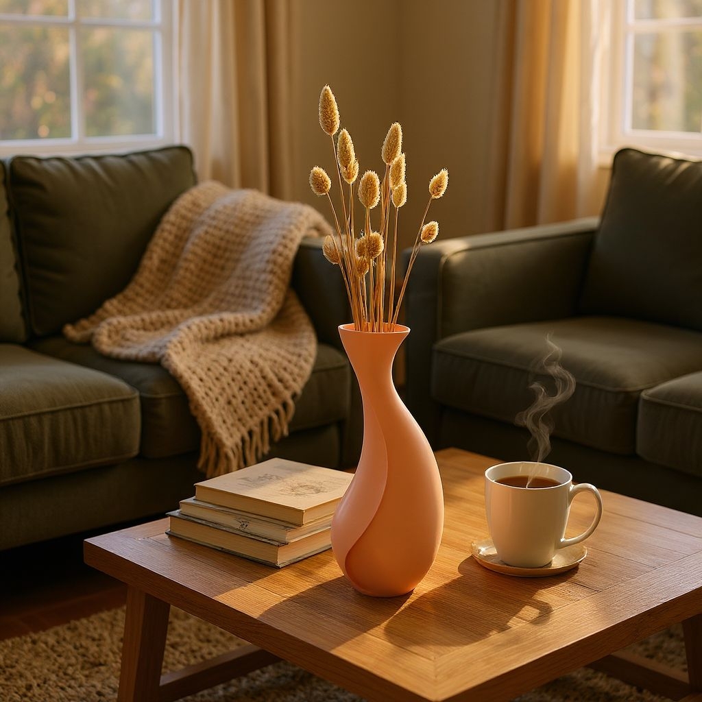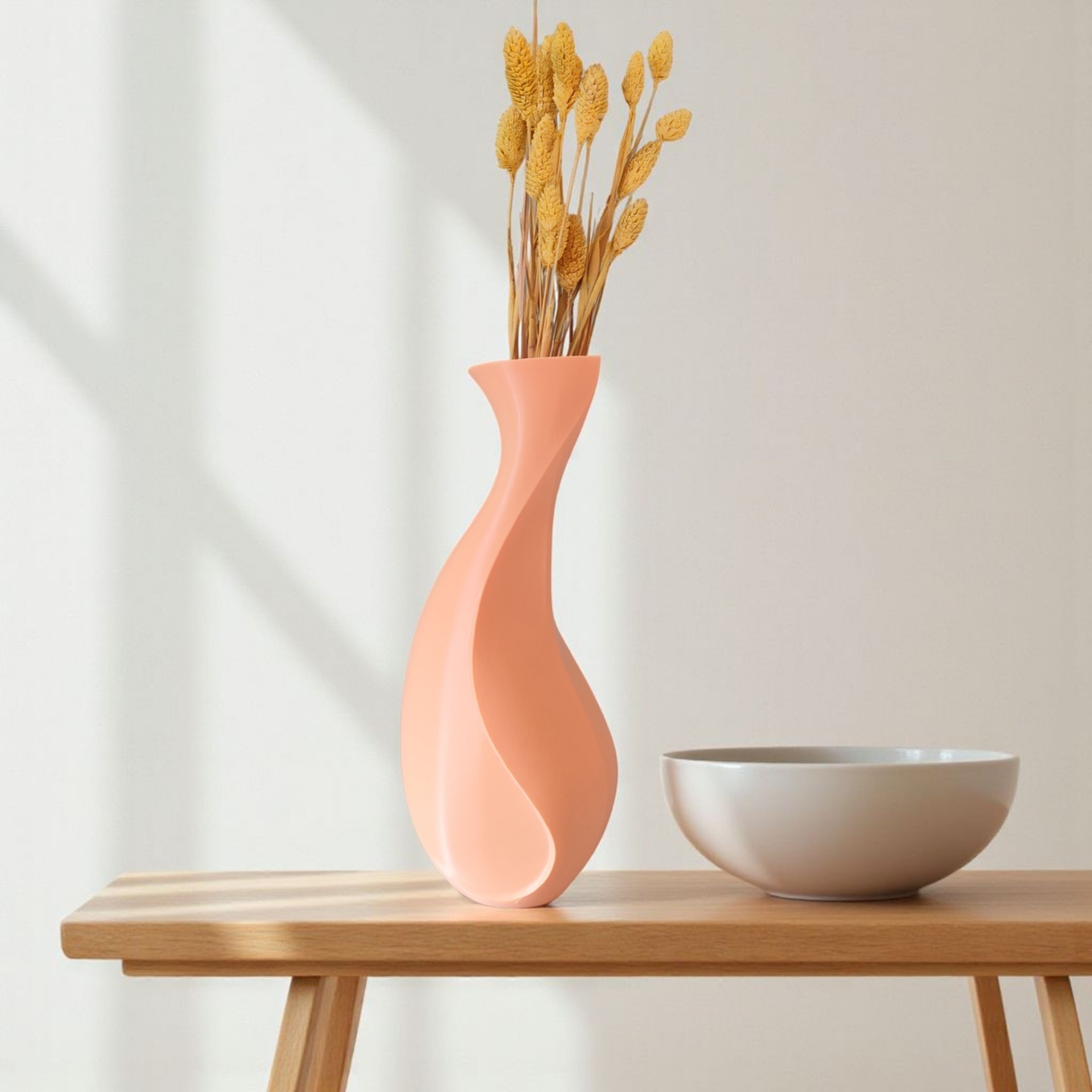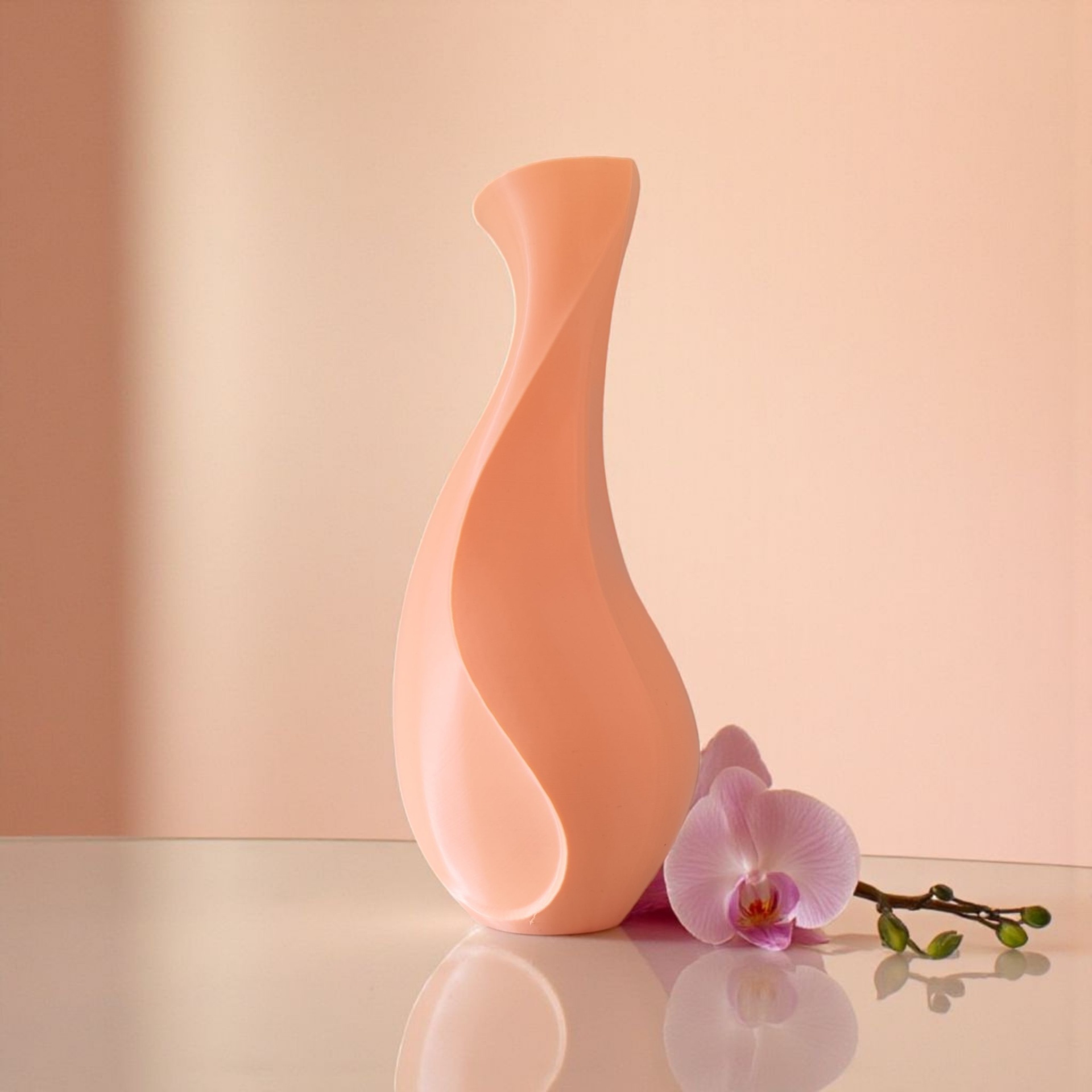 O Vaso Aura eleva a arte de decorar com formas orgânicas e fluidas, desenvolvido em impressão 3D para trazer movimento e elegância a qualquer espaço. A curvatura suave e assimétrica cria um efeito escultórico que combina perfeitamente com flores frescas, plantas secas ou como peça independente.